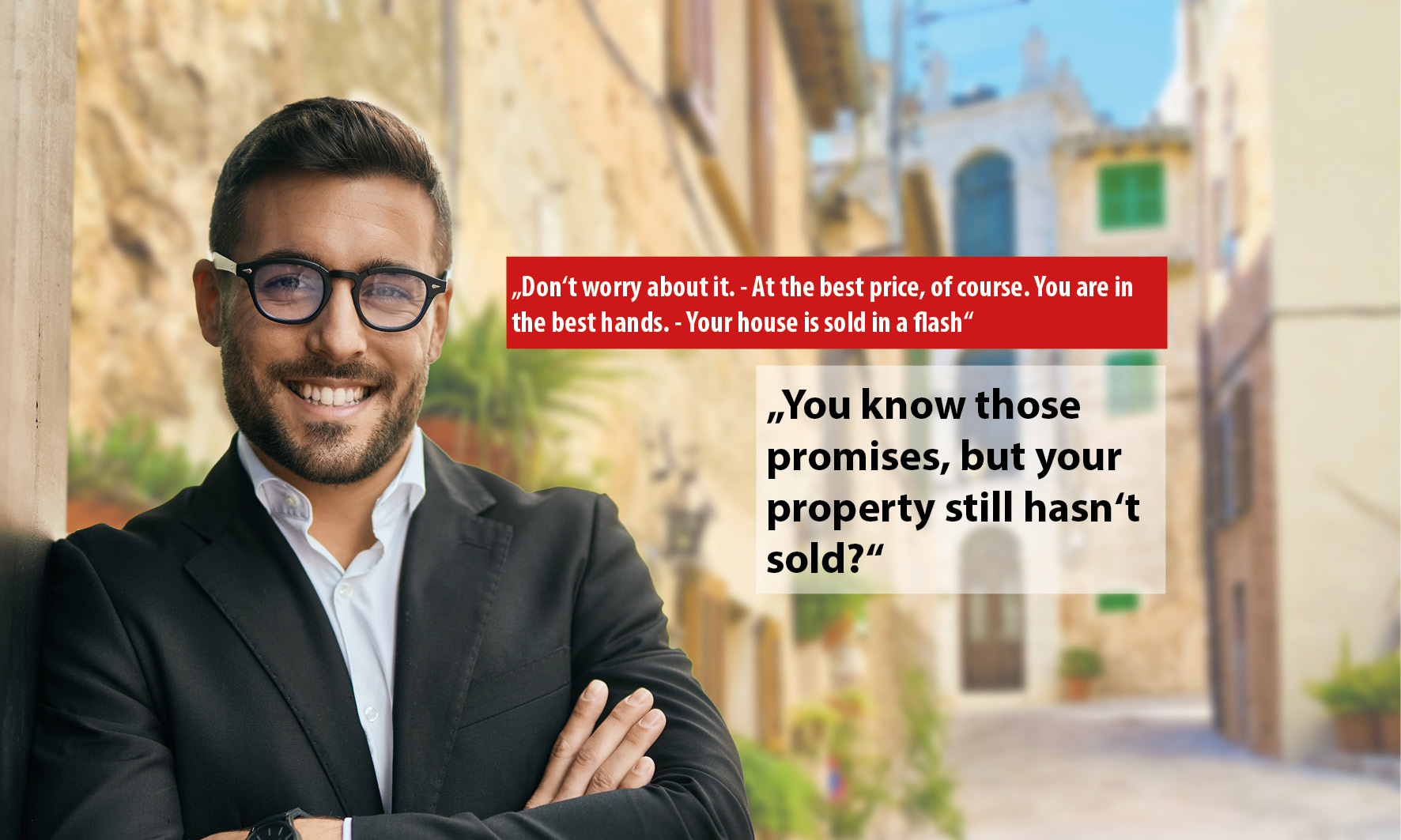 Our offers in well over 100 TOP real estate portals reach more than 50 million interested parties every month, and even in the respective national language. There should be the right buyer for every property. We are so much closer to our customers and thus completely dispense with unused offices. We invest the money saved in the targeted search and marketing of our large range of properties.