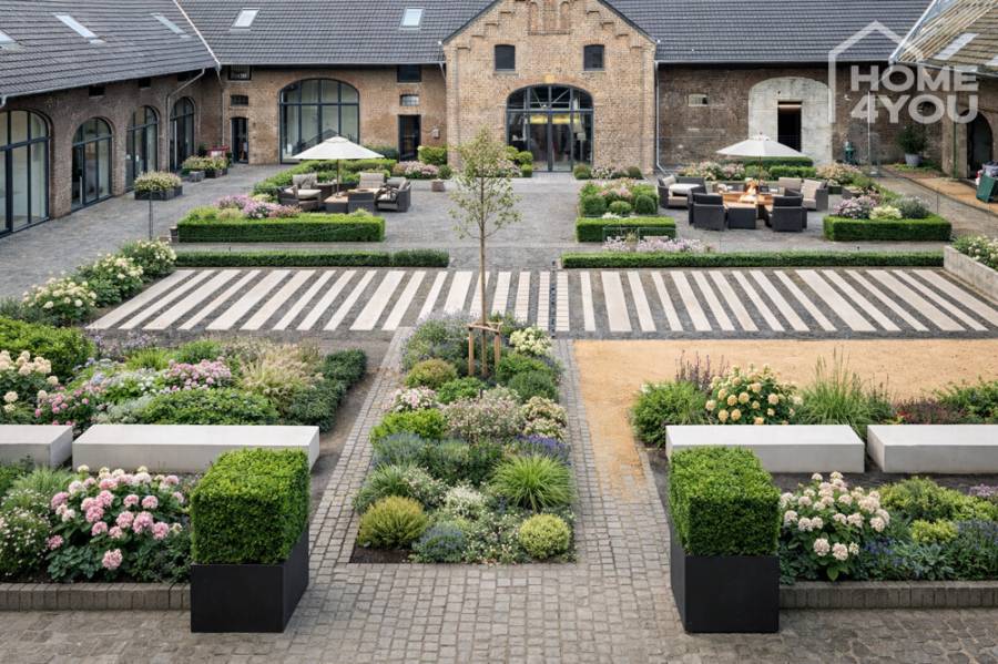 On a sunny day, as soon as you enter the gardens of the historic courtyard complex, you will feel totally relaxed, you won't want to leave, you will want to spread out a blanket, unpack the red wine and cheese and enjoy the peace and quiet. You will experience a very pleasant sense of tranquillity in the countryside and yet you are not far from the region's major cities.