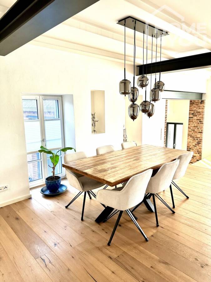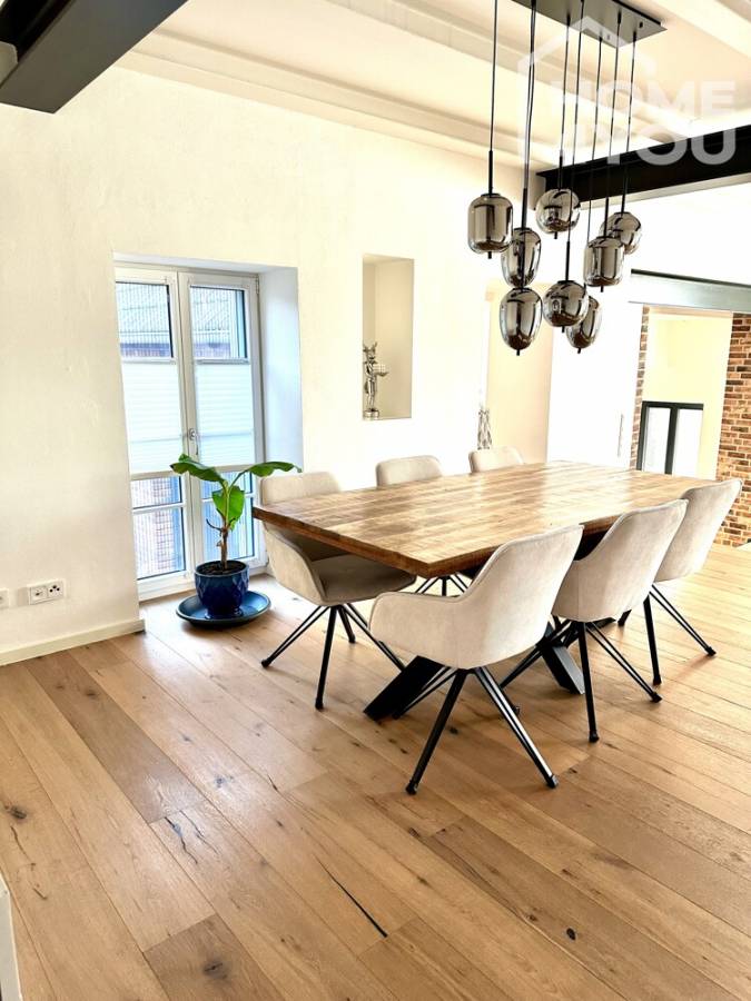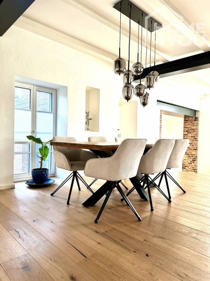 LOFT1400 is a luxurious apartment in the manor house of the historic "Rittergut Tillmannshof". The first documented mention of the name dates back to the late 14th century. The Rhenish square farm is located in Erftstadt-Dirmerzheim, not far from the city center of the metropolis of Cologne. The total plot area is 14,500 square meters.