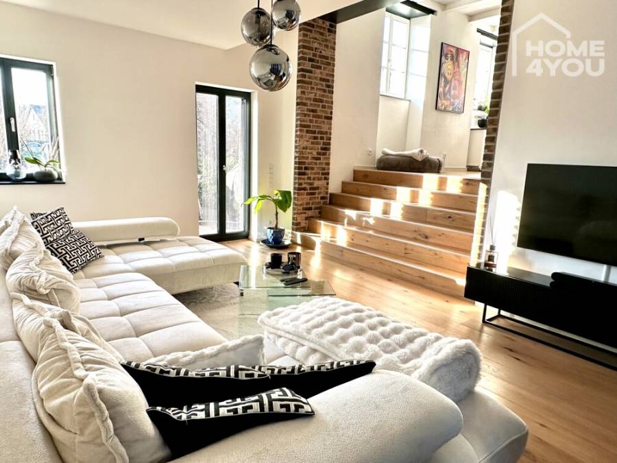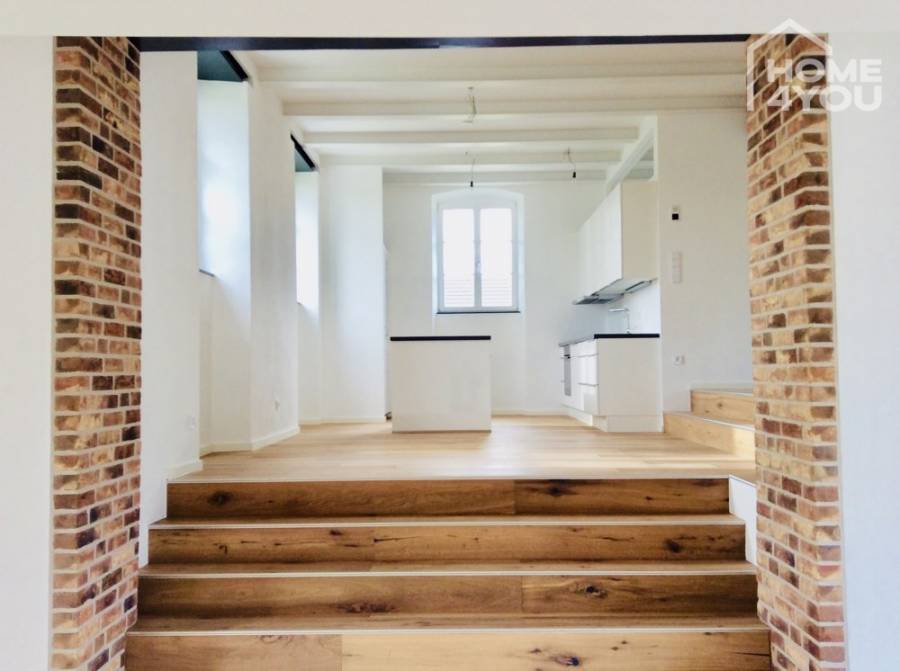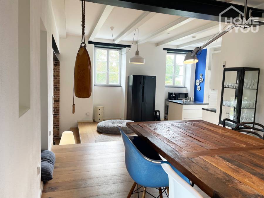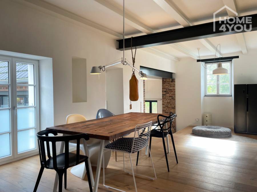 Loft apartment in luxuriously restored manor house, 134 sqm, 2 bedrooms, bathroom, garden & terraces, cellar, garage
