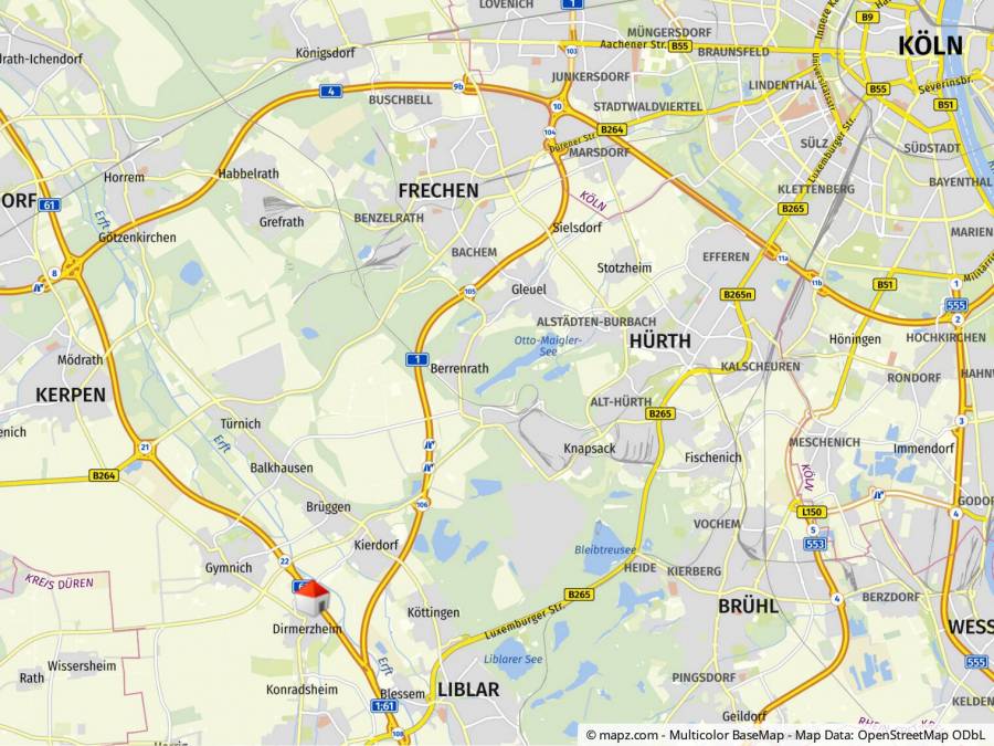 Not only is Erftstadt centrally located and in close proximity to the two major cities of Cologne and Bonn (approx. 20 minutes), it also borders directly on the Rhineland Nature Park.