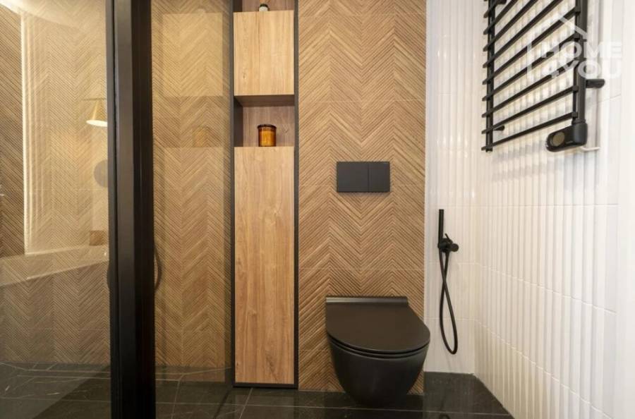Warm terracotta tones in the floor area create a cozy atmosphere, while an elegant pellet fireplace offers additional comfort.