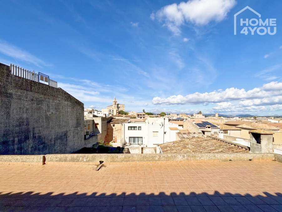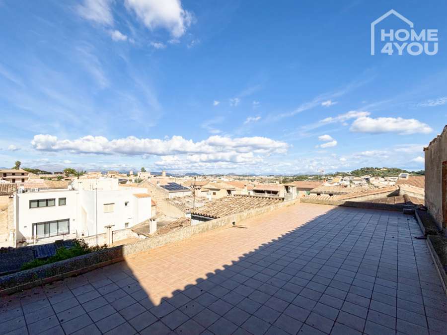 The highlight is located on the top floor: an existing, spacious roof terrace with sweeping views over the rooftops of Santa Margalida. The adjoining rooms are perfect for creative use – whether as a studio, guest room or work area with access to the outdoors.