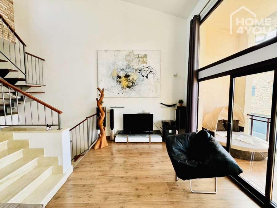 Besonderen Charme verleiht die außergewöhnliche Loftbauweise, die nicht nur für eine optimale Raumnutzung sorgt, sondern auch ein einzigartiges Raumgefühl schafft. Die bis zu 8 Meter hohe Decke im Wohnbereich unterstreicht das großzügige Ambiente dieses Hauses.