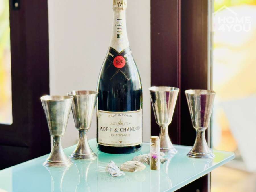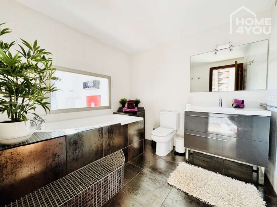 Insgesamt fünf Zimmer, darunter drei stilvolle Schlafzimmer und zwei moderne Badezimmer, bieten Ihnen und Ihrer Familie ein Höchstmaß an Privatsphäre. Der harmonische Mix aus Natursteinwänden, Holz- und Marmorelementen sowie hochwertigem Holzlaminatboden sorgt für ein exklusives und zugleich gemütliches Ambiente.