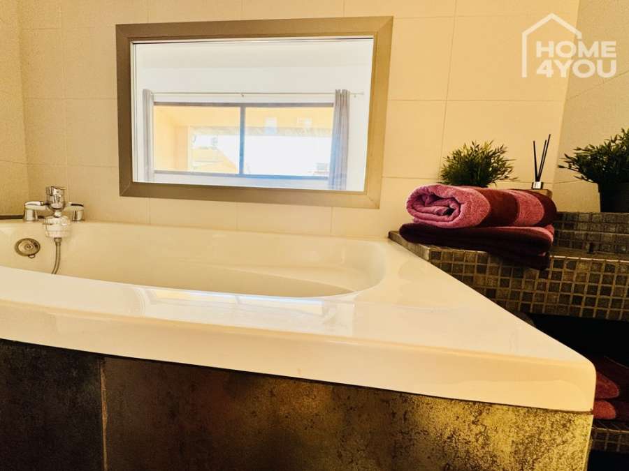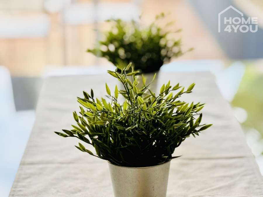 Die edle Häcker-Einbauküche ist mit Siemens-Markengeräten ausgestattet und lässt keine Wünsche offen. Für ein angenehmes Raumklima sorgt die elektrische Fußbodenheizung, die durch eine umweltfreundliche Photovoltaikanlage betrieben wird – ein Highlight, das keine Stromkosten mehr verursacht. Ergänzt wird dies durch leistungsstarke Samsung-Klimaanlagen, die für wohltemperierte Räume sorgen.