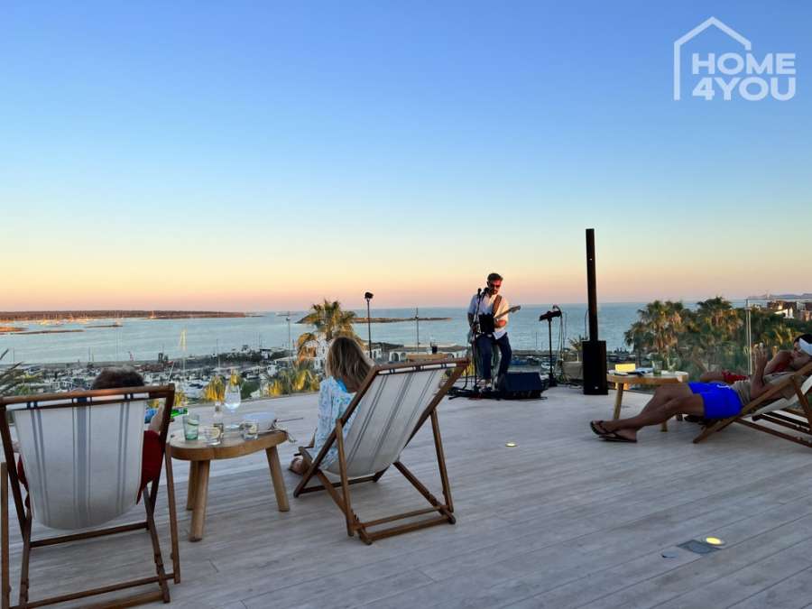 Das Herzstück des Hauses ist das lichtdurchflutete Wohnzimmer, dessen Südausrichtung für herrlich warme Sonnenstrahlen sorgt. Drei Terrassen – darunter eine mit Meerblick, eine weitere Dachterrasse mit Blick auf die Tramuntana – laden ein, entspannte Stunden unter freiem Himmel zu verbringen. Die großzügige Fensterfront, die nahezu vollständig verglast ist, schafft ein offenes, elegantes Ambiente und erlaubt einen fließenden Übergang zwischen Innen- und Außenbereich.