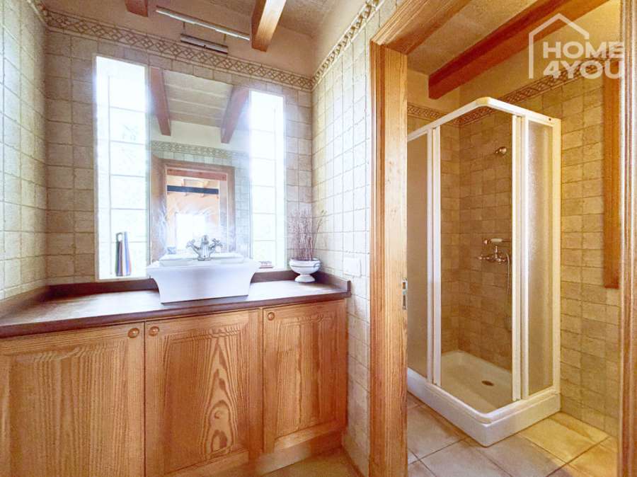 The outdoor area boasts a large pool and a fully equipped outdoor kitchen with barbecue – ideal for summer evenings in the open air. Two private wells ensure a self-sufficient water supply, and thanks to the solar panels, you are largely energy-independent. The various terrace levels invite you to enjoy the Mediterranean ambience. A double garage offers additional possibilities for use, for example as a separate apartment.