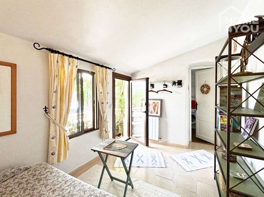 Tres dormitorios y dos cuartos de baño se reparten en cuatro estancias diseñadas con gusto – incluyendo un apartamento de invitados integrado con su propio cuarto de baño, ideal para amigos o familiares de visita. La vegetación madura crea privacidad y redondea el ambiente mediterráneo.