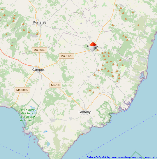 Felanitx liegt im Südosten Mallorcas, umgeben von sanften Hügeln, Weinbergen und weiten Feldern. Die Nähe zur Natur prägt das Ortsbild ebenso wie die entspannte Atmosphäre. Bis nach Palma sind es etwa 40 Minuten mit dem Auto, die Strände der Ostküste sind in ca. 20 Minuten erreichbar.