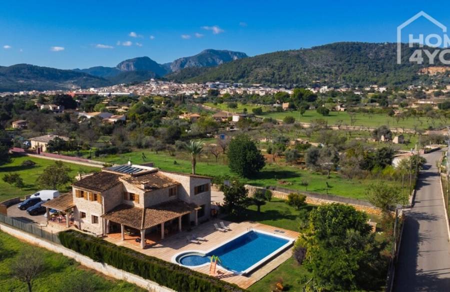 Diese außergewöhnliche Immobilie vereint traditionelle mallorquinische Architektur mit moderner Technik und hochwertiger Bauausführung. Das 1999 errichtete Haus befindet sich in ruhiger, ländlicher Lage zwischen Inca und Lloseta, mit schneller Anbindung an die Autobahn und asphaltierter Zufahrt.